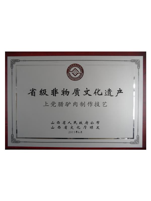 《本草綱目》第五十卷記載有:“驢肉味甘、無毒、解心煩、止風狂、能安心氣、補血益氣、治遠年勞損”的作用,尤其對失眠、健忘、眩暈、營養(yǎng)不良、貧血癥有獨特療效。上黨臘驢肉是山西長治市的漢族傳統(tǒng)名吃,其肉質肥而不膩、瘦而不柴、香味四溢、回味無窮。早在明代,臘驢肉就已馳名于上黨和晉南地區(qū),產(chǎn)品遠銷北京、天津、南京等南北名城。臘驢肉與當?shù)氐臎龇邸⑺只馃环Q為潞安府(長治古稱潞安府)三寶。